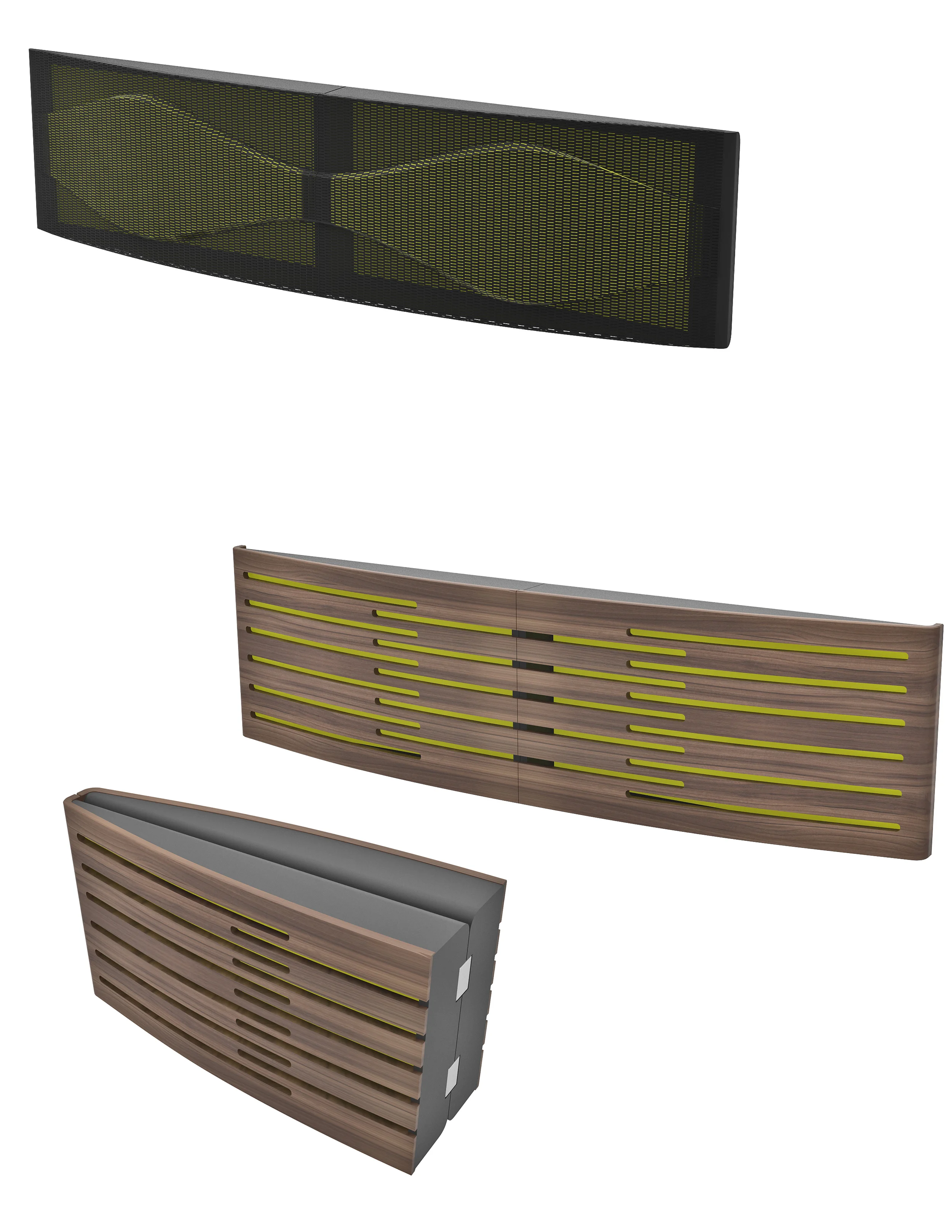 Foldable multi-media Bluetooth audio system - multiple units can be stored in cabinet or small storage closet.